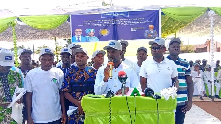 Dans la même dynamique, les interventions des leaders locaux ont révélé un niveau d’organisation et de confiance rarement affiché à ce stade d’une campagne électorale. Faustin Guidi, facilitateur de la plateforme Jeunesse Wadagni du Couffo, et l’honorable Christophe Fangnon ont, dans un ton résolument offensif, lancé un défi logistique et patriotique à la population : celui de boucler le scrutin au plus tard à midi, signe d’une mobilisation massive et disciplinée. Prenant la parole à son tour, le Directeur départemental de la santé du Couffo, le Dr Jean Yaovi Daho, a inscrit son message dans une dynamique de terrain, appelant les populations à sortir massivement dès le 07 avril pour réserver un accueil chaleureux et historique au duo Wadagni–Talata à Lalo. Poursuivant sur cette lancée, il a invité les électeurs à transformer cette mobilisation en un vote massif le 12 avril 2026, avec pour objectif affiché de réaliser un « kao » retentissant dans tout le département du Couffo, traduisant ainsi une adhésion populaire forte et assumée en faveur du duo. Dans cette même logique, Pierre Viho, président du MWTM26, a exhorté les militants à viser un score historique, dépassant largement les 90 % des suffrages.